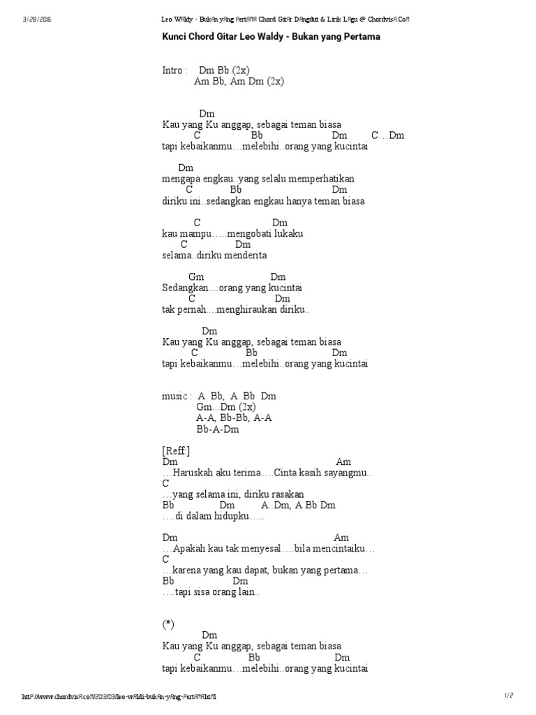 Chord Kunci Gitar Lirik Lagu Bukan Yang Pertama Mega Mustika Kau Yang Ku Anggap Tribunpadang Com