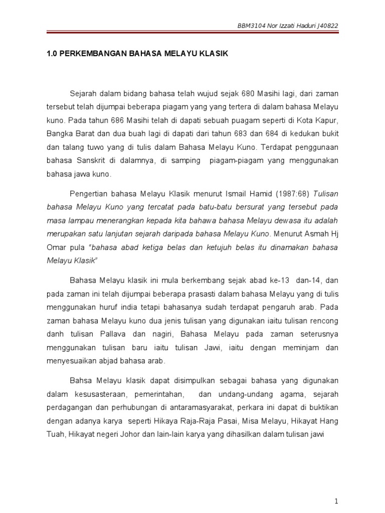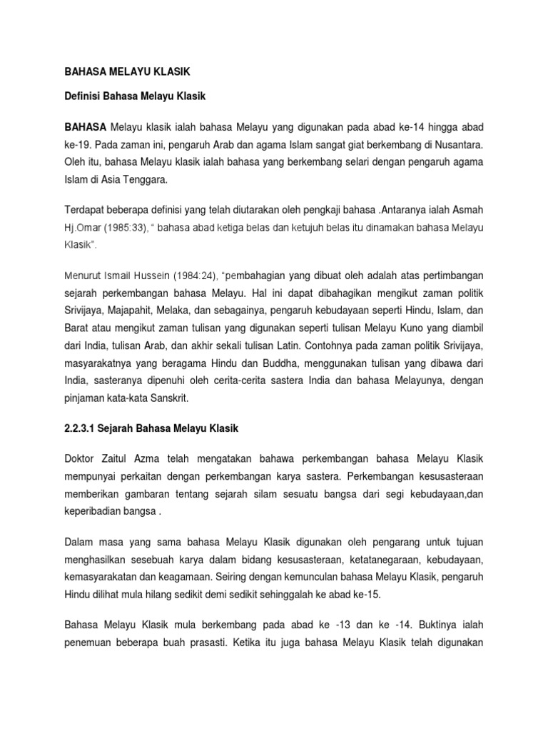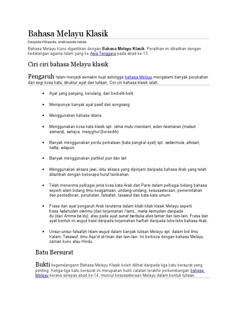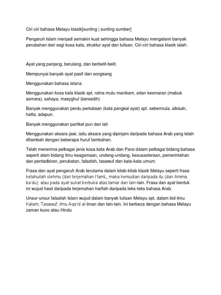 Ciri Ciri Bahasa Melayu Klasik Pdf